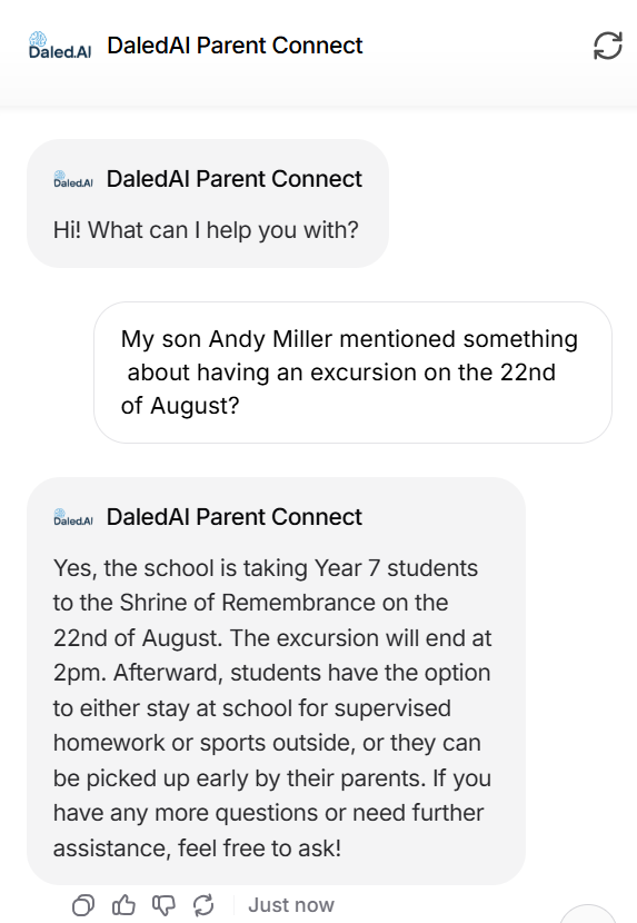 Our Parent Connect Chatbot helps schools stay responsive and accessible — 24/7. Designed specifically for educational institutions, this AI-powered assistant answers common parent questions instantly, from school hours and term dates to admissions and policies.